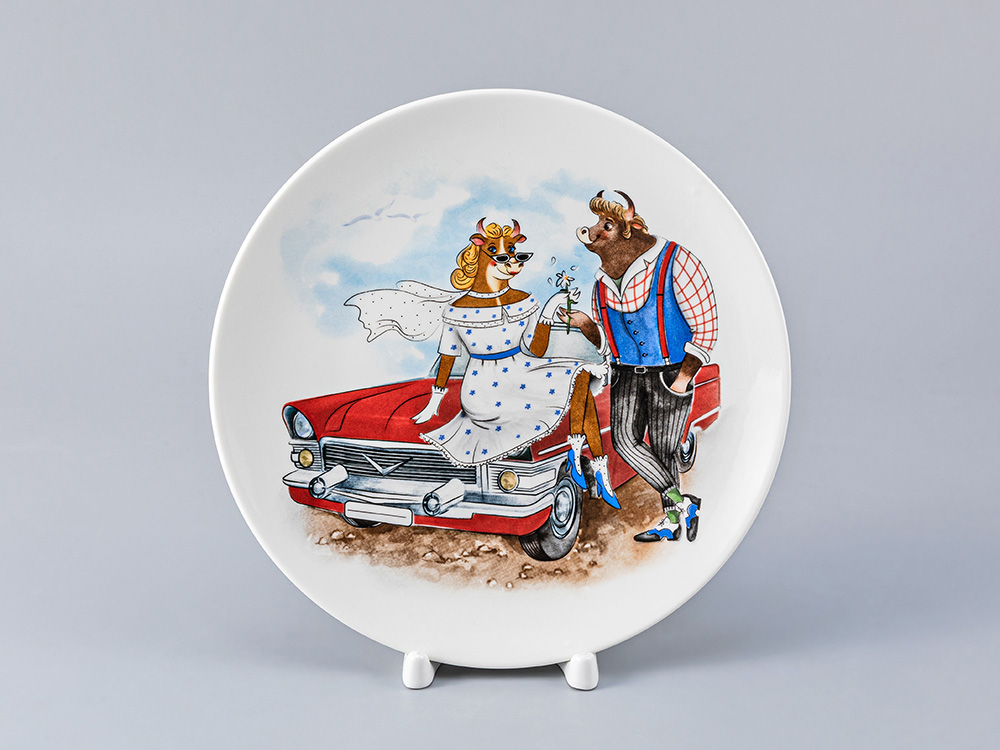 Харизматичный бык – настоящий стиляга, который никому не даст заскучать в самую главную ночь года. Декор тарелок новогодней коллекции «Быки-стиляги» передает атмосферу субкультуры середины XX века, когда молодые люди выделялись ярким внешним видом, демонстрируя его на центральной улице города – «Бродвее», собирались дома, танцуя зажигательный танец «Буги-вуги», и выглядели настоящими романтиками, разъезжая на модном авто.