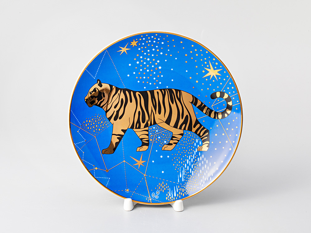 «Наступает пора чудес - в ожидании сказки мы ловим в синем небе мерцание звезд, а фарфоровые новогодние тигры приносят удачу, исполнение желаний, счастье и хорошее настроение на весь год» - так описывает Нина Троицкая настроение, заложенное в новую коллекцию декоративных тарелок, разработанную автором специально к наступающему году тигра. Для каждой тарелки автор находит оригинальное композиционное решение, лаконичная цветовая гамма дополнена золотыми акцентами. Декоративные тарелки с тиграми, дизайн которых подойдет как для мужского, так и для женского подарка, станут удачным дополнением интерьера.