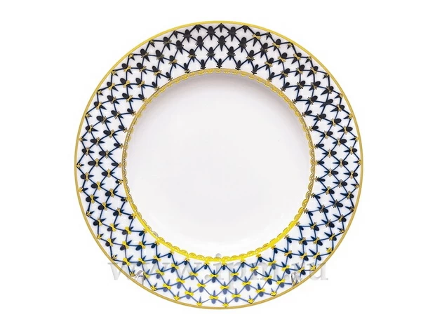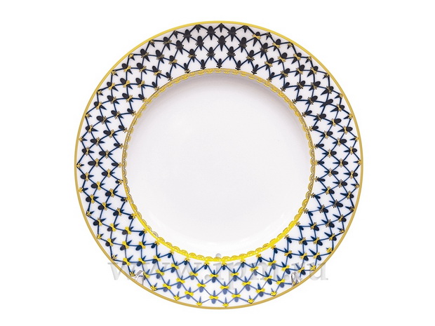 Тарелка десертная рис. Кобальтовая сетка изготовлена на Императорском фарфоровом заводе из твердого фарфора с элементами ручной росписи. Автор рисунка - Яцкевич А.А. Диаметр изделия - 220 мм.