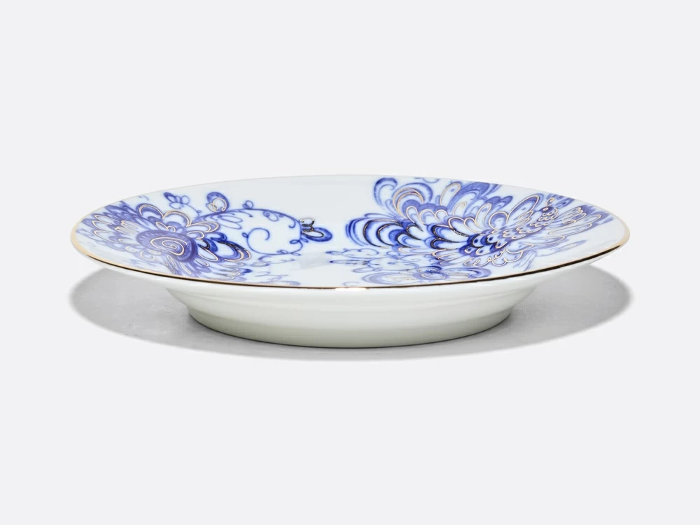 Тарелка десертная рис. Поющий сад изготовлена на Императорском фарфоровом заводе из твердого фарфора с элементами ручной росписи. Автор рисунка - Славина Н.П. Диаметр изделия - 200 мм.