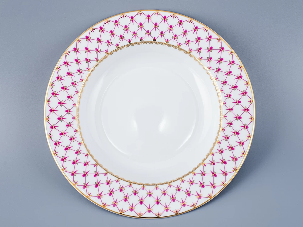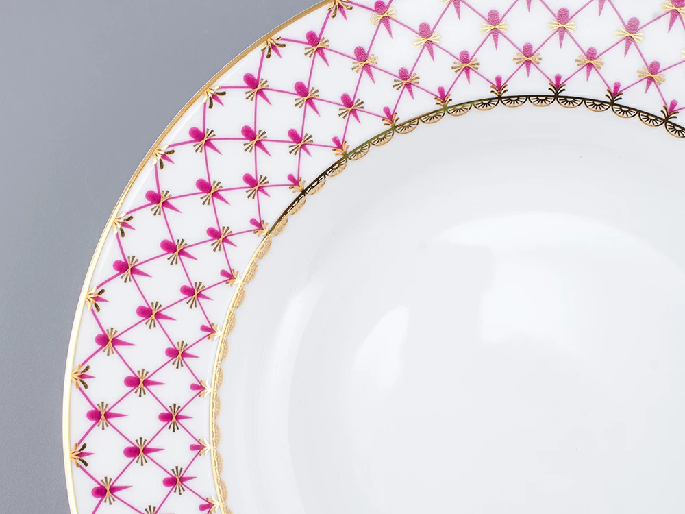 «Сетка-блюз» - это современная интерпретация росписи «Кобальтовая сетка», ставшей признанной классикой Императорского фарфорового завода. Розовый цвет отсылает к прообразу этого легендарного мотива – «Собственному» сервизу Императрицы Елизаветы Петровны, выпущенного в 1750-х годах, а ныне хранящегося в коллекции Государственного Эрмитажа.