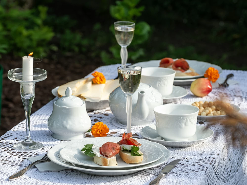 Коллекция California – это классика, которая никогда не наскучит. Элегантный белоснежный фарфор станет органичной частью любого накрытия и интерьера. Изюминкой коллекции является рельефный растительный декор. Борта и тулова предметов украшены фруктами и виноградной лозой, которые напоминают о солнечном лете и неспешной загородной жизни.