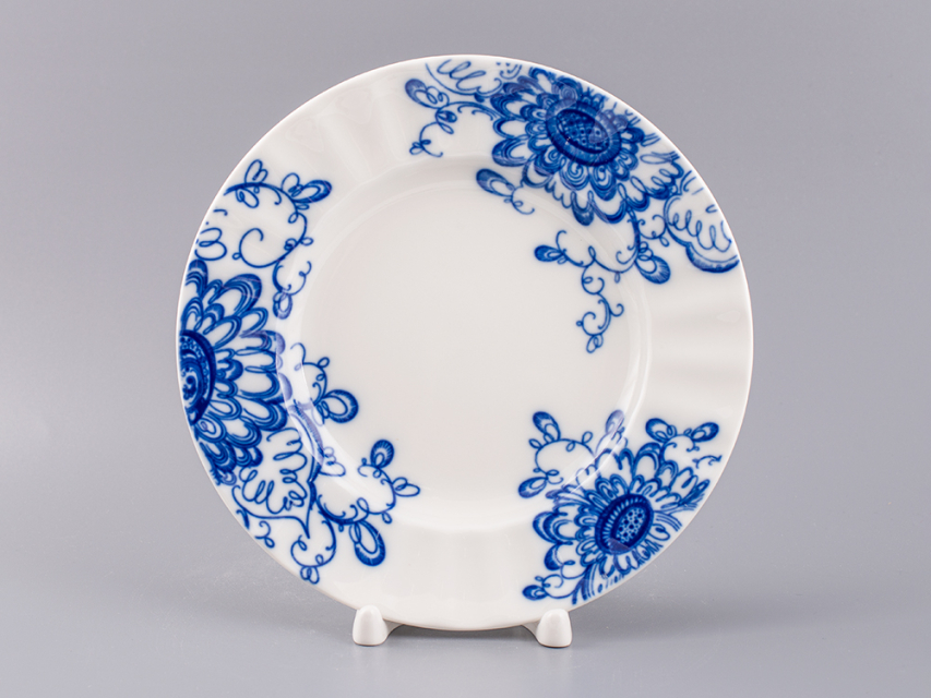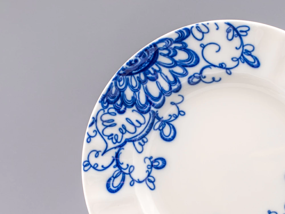 Цветочные мотивы сервиза «Поющий сад» на форме «Шатровая» автора Нины Славиной воплотились в рисунке «Гарден». Нина Славина – признанный художник XX века, в 70-80-е годы была главным художником завода и активно работала с технологией печати рисунков кобальтом для больших тиражей. Если в декоре «Поющего сада» изображения птиц и цветов расположены плотно, то в серии «Гарден» обращается к флоральному орнаменту и более разреженной компоновке элементов. Воздушный узор из пышных цветов объединяет в себе образы восточных и западных культурных традиций росписи фарфора. Посуда с этим декором прекрасно впишется в классическую кухню и столовую в русском или европейском стиле