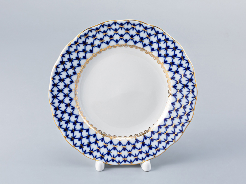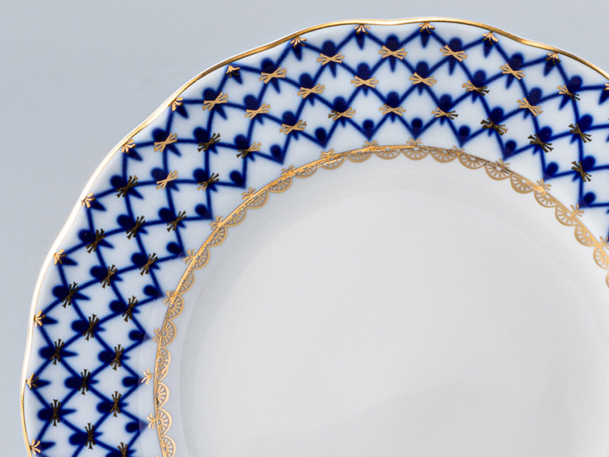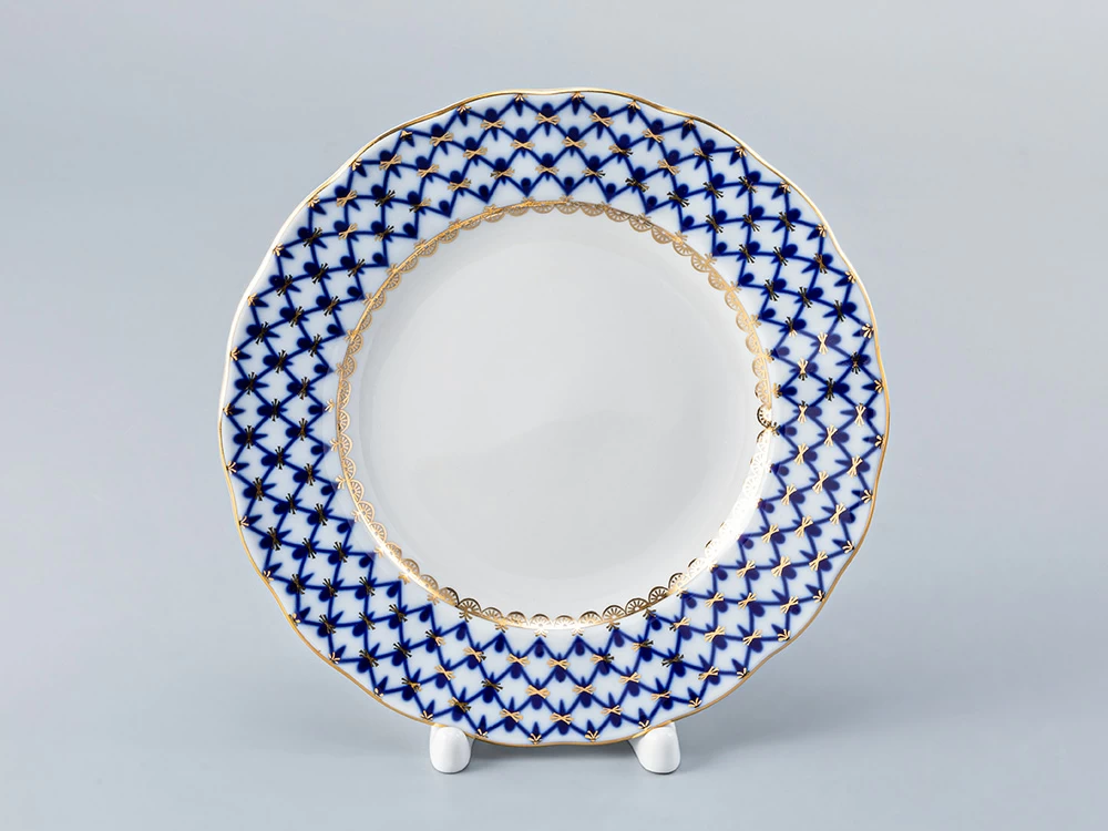 Тарелка десертная рис. Кобальтовая сетка изготовлена на Императорском фарфоровом заводе из твердого фарфора с элементами ручной росписи. Автор рисунка - Яцкевич А.А. Диаметр изделия - 206 мм.