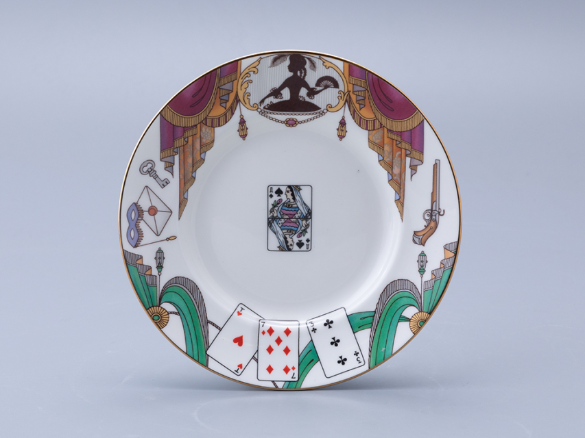 Комплект «Пиковая дама» вошел в серию от Императорского фарфорового завода, посвященную шедеврам мировой оперы. Художник Любовь Цветкова создала рисунки для этого комплекта по опере П.И. Чайковского. Опера, написанная по мотивам одноименной повести А.С. Пушкина, была создана в 1890 году и стала одной из самых известных в творчестве композитора. На предметах комплекта автор изображает главных героев на фоне Петербурга XVIII века и характерные декорации.