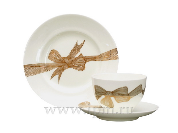 Комплект чайный рис. Платиновые бантики изготовлен на Императорском фарфоровом заводе из костяного фарфора с элементами ручной росписи. Автор рисунка - Чарина Т.Л. Объем изделия - 160 мл.