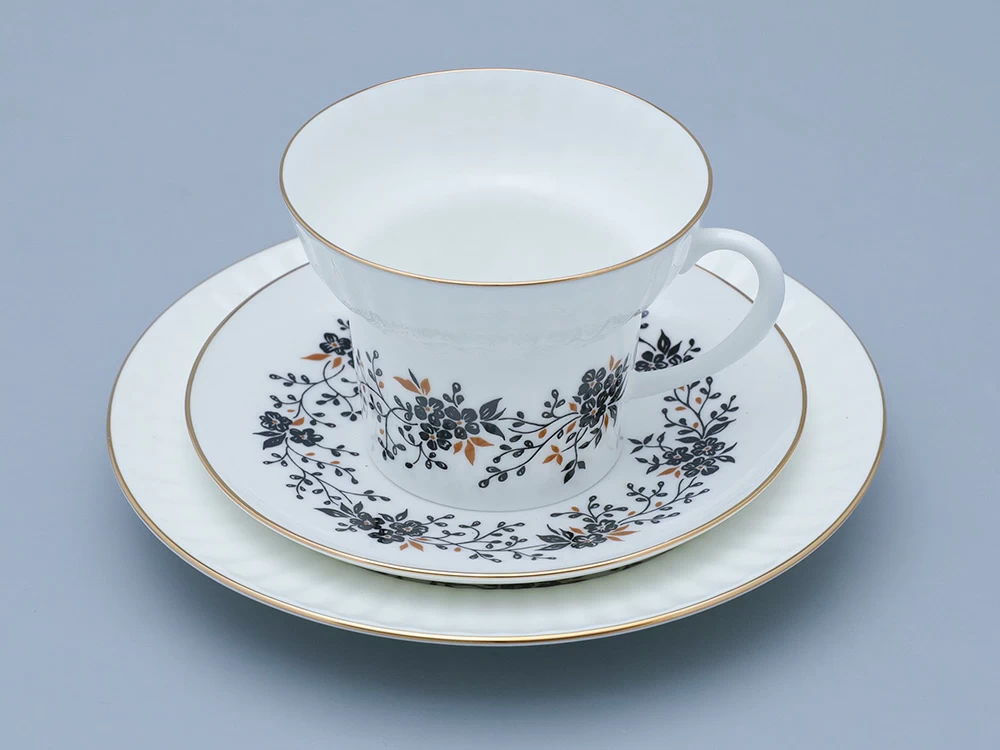 Трехпредметный комплект чайный форма Волна рисунок Тонкие веточки 155 мл арт. 81.14404.00.1