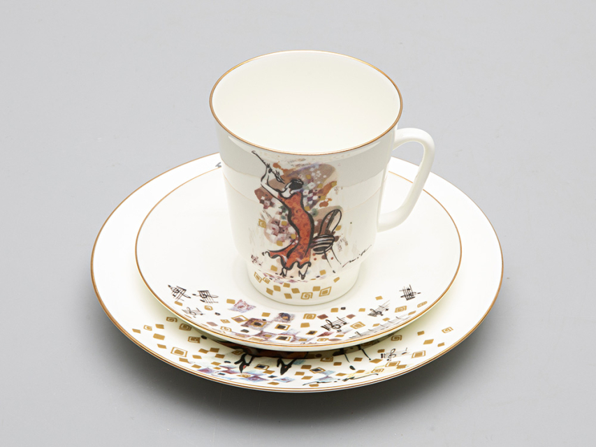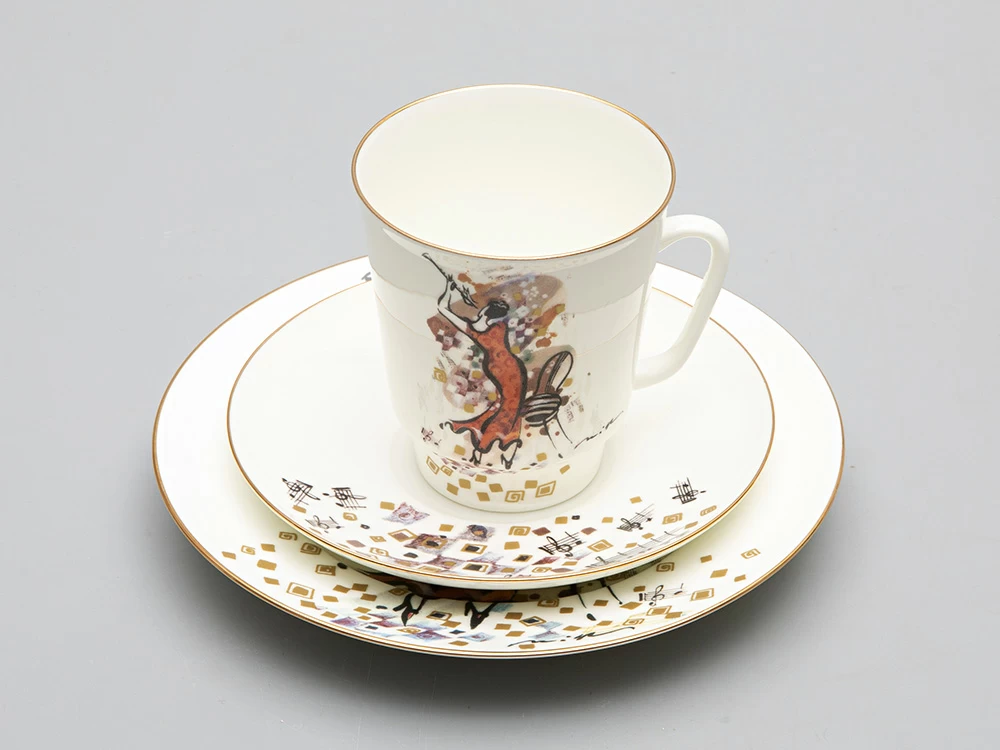 «7 нот Миши Ленна» – это трехпредметные комплекты из тонкостенного костяного фарфора с изысканной росписью художника. Свою коллекцию Миша Ленн посвятил высочайшему из искусств – музыке, которая пронизывает все произведения художника и неизменно становится частью композиции на его картинах. На комплектах, каждый из которых посвящен определенной ноте, расположились музыканты, исполняющие интригующие мелодии на одном из инструментов: фортепиано, скрипке, контрабасе, кларнете и арфе. Вместе они «звучат» как полноценный ансамбль.