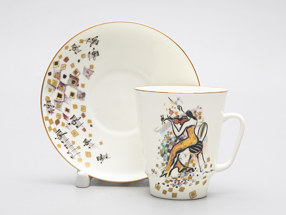 «7 нот Миши Ленна» – это трехпредметные комплекты из тонкостенного костяного фарфора с изысканной росписью художника. Свою коллекцию Миша Ленн посвятил высочайшему из искусств – музыке, которая пронизывает все произведения художника и неизменно становится частью композиции на его картинах. На комплектах, каждый из которых посвящен определенной ноте, расположились музыканты, исполняющие интригующие мелодии на одном из инструментов: фортепиано, скрипке, контрабасе, кларнете и арфе. Вместе они «звучат» как полноценный ансамбль.