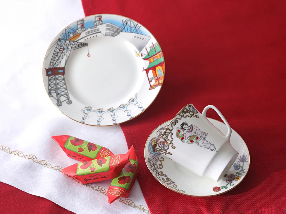 В 2023 году серия «Русский балет» пополнилась кофейным комплектом, который автор Любовь Цветкова посвятила балету «Красный мак» Рейнгольда Глиэра. «Красный мак» стал первым советским балетом и считается истинным шедевром советского балетного искусства. На фарфоре автор изображает главных героев -красавицу Тао Хоа, ее жениха и капитана советского корабля, место действия, где развивается сюжет, и связанные с ним декоративные композиции. На блюдце «распустились» традиционные китайские узоры и цветочная композиция. В ней (как и на веере Тао Хоа и в букете в руках капитана) можно увидеть нежный бутон красного мака. На десертной тарелке автор разместил декорации – обстановку крупного порта, куда заходит советский корабль и где впоследствии развиваются события. Одна из любопытных деталей на тарелке – матросы, танцующие «Яблочко». Художник подчеркнула эффектный прием, когда в классической хореографии появляется самобытный танец. «Красный мак» стал продолжением серии трехпредметных комплектов, созданных по мотивам самых значительных, по мнению Любови Цветковой, отечественных балетных спектаклей.