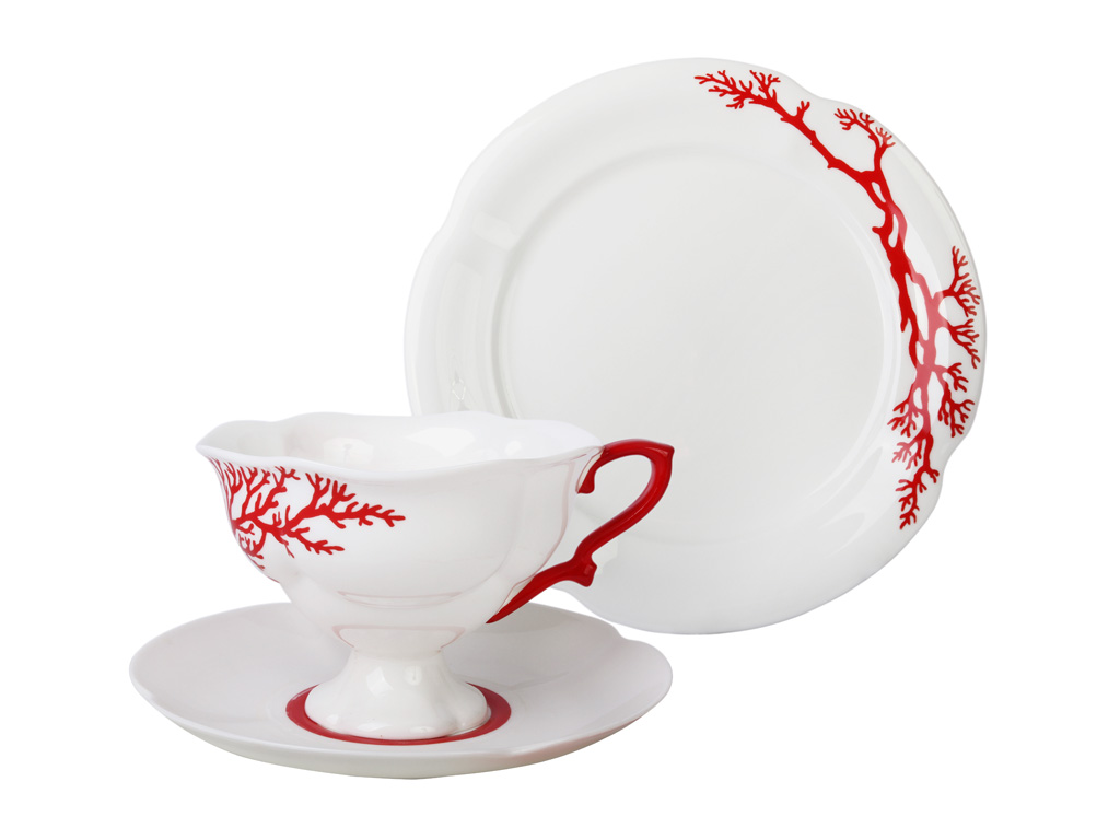 Комплект чайный рис. Коралл изготовлен на Императорском фарфоровом заводе из костяного фарфора с элементами ручной росписи.