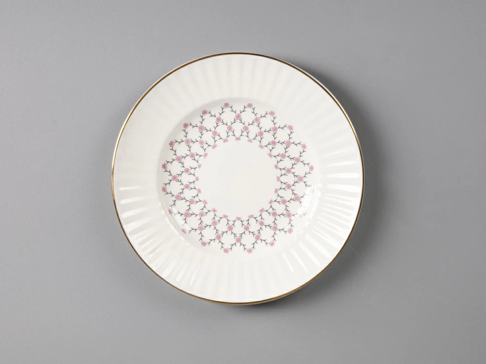 Рисунок "Розовая сетка" Людмилы Лобанковой, выполненный графически тонко и изящно, перекликается со знаменитой "Кобальтовой сеткой". Комплект чайный рис. Розовая сетка изготовлен на Императорском фарфоровом заводе из костяного фарфора с элементами ручной росписи. Автор рисунка - Лобанкова Л.С. Объем изделия - 155 мл.