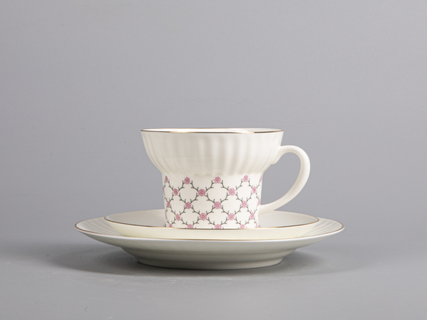 Трехпредметный комплект чайный форма Волна рисунок Розовая сетка 155 мл арт. 81.14622.00.1