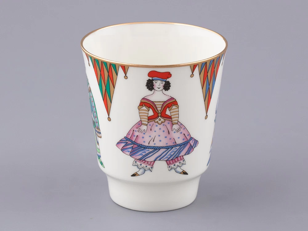 Росписи серии «Русский балет», куда вошел трехпредметный комплект «Петрушка», созданы по мотивам самых значительных русских балетных спектаклей. Благодаря художнику, основателю и главному идеологу объединения «Мир искусства» Александру Бенуа у нас есть возможность окунуться в атмосферу русского масленичного балагана – именно детские воспоминания вдохновили его на создание либретто, сценографии и эскизов, костюмов и декораций к балету «Петрушка» Игоря Стравинского. Петрушка – фольклорный персонаж, ставший символом русского балетного авангарда XX века, а сам балет – яркой страницей «Русских сезонов» Дягилева в Париже.