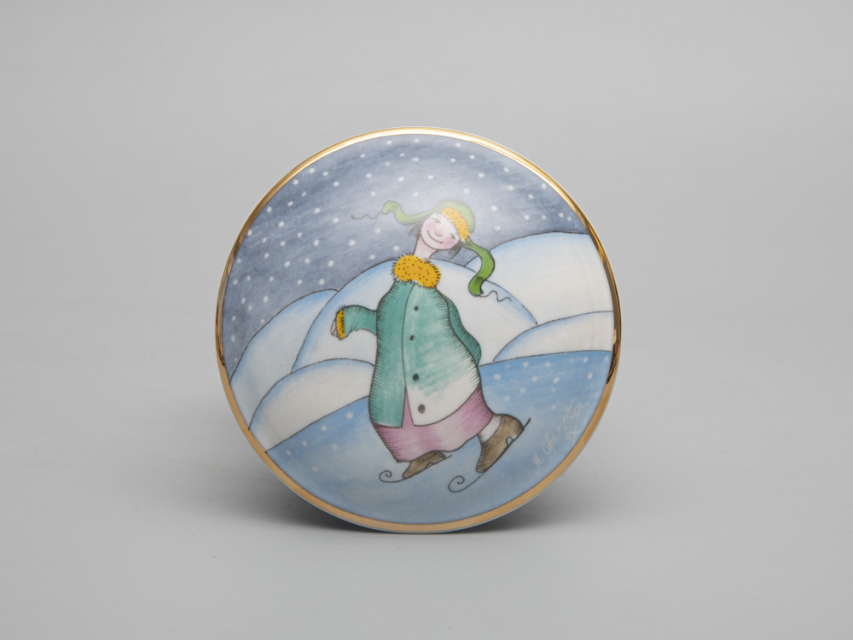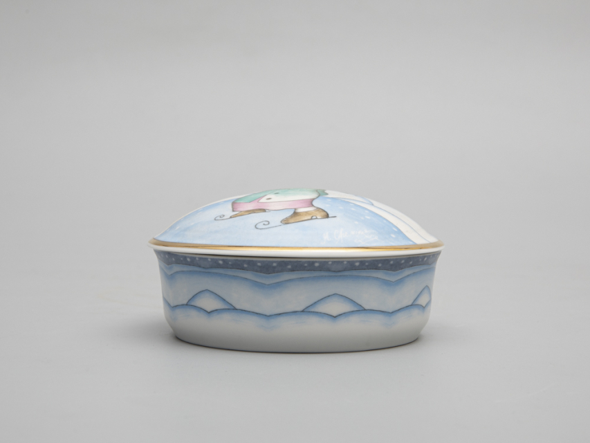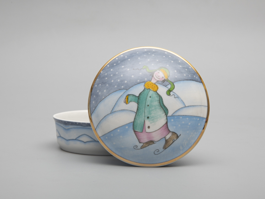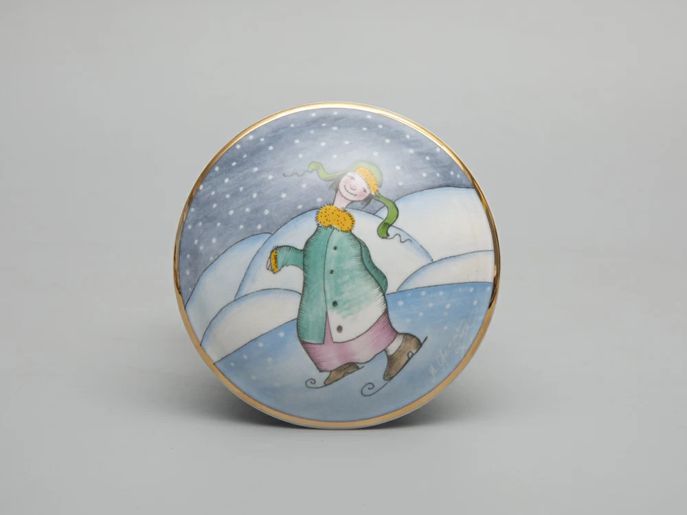 Туалетная коробочка серии "Зима" новинка 2022 года - входит в коллекцию "Мир в каплях воды". Как и в других своих работах, Михаил Шемякин изображает персонажа, играющего в любимую многими зимнюю забаву - хоккей. Рисунок специально адаптирован к фарфору, который Михаил Шемякин тонко чувствует и понимает, создавая оригинальные произведения, с присущим художнику видением мира и высочайшим мастерством, воплощенным в материале.