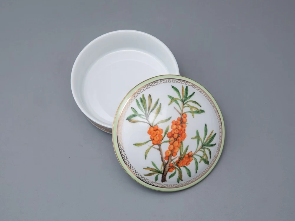 Туалетная коробочка в подарочной упаковке, форма Круглая, рисунок Облепиха сибирская, арт 81.33950.00.1