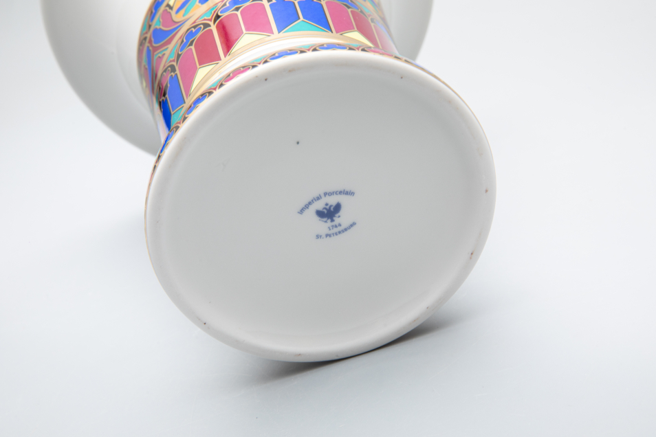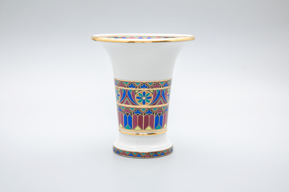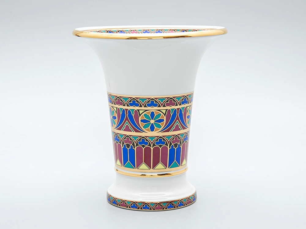 Основой для оформления современной коллекции ваз послужила историческая серия «Готических» тарелок для десерта, изготовленная в 1831 году на Императорском фарфоровом заводе в дополнение к Собственному сервизу дворца Коттедж. Витражное окно - «роза», характерный элемент готических храмов, стало основным мотивом декора.