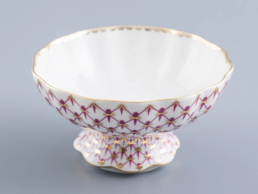 «Сетка-блюз» - это современная интерпретация росписи «Кобальтовая сетка», ставшей признанной классикой Императорского фарфорового завода. Розовый цвет отсылает к прообразу этого легендарного мотива – «Собственному» сервизу Императрицы Елизаветы Петровны, выпущенного в 1750-х годах, а ныне хранящегося в коллекции Государственного Эрмитажа.