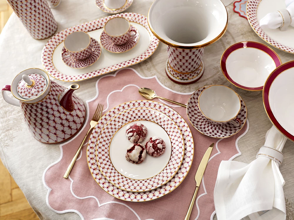 «Сетка-блюз» - это современная интерпретация росписи «Кобальтовая сетка», ставшей признанной классикой Императорского фарфорового завода. Розовый цвет отсылает к прообразу этого легендарного мотива – «Собственному» сервизу Императрицы Елизаветы Петровны, выпущенного в 1750-х годах, а ныне хранящегося в коллекции Государственного Эрмитажа.