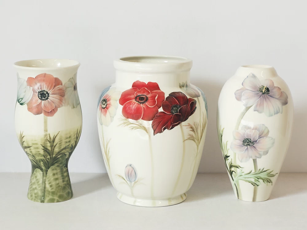 Автор росписи Татьяна Чапургина украсила поверхность нежными анемонами: белые лепестки с зелеными листьями выполнены вручную подглазурным методом, что гарантирует стойкость красок.