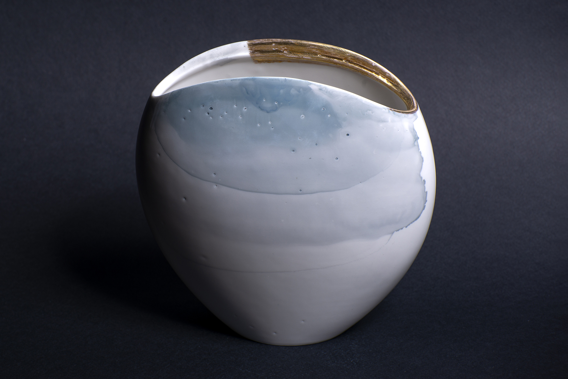 Фарфор Юлии Жуковой современен и концептуален, декоративен и эмоционален. В последние годы автор зачастую обращается к эстетике минимализма, что соответствует актуальным тенденциям интерьерного дизайна. Это направление прослеживается в вазе «Туман». Ее роспись отражает тему, подаренную самой природой.