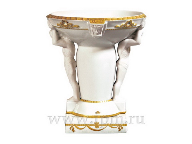 Ваза "Атланты" изготовлена на Императорском фарфоровом заводе с авторского оригинала из коллекции Государственного Эрмитажа. В оформлении использован стилизованный рельефный древнегреческий орнамент и изображения знаменитых атлантов скульптора И. Теребенева, подпирающих портик Эрмитажа.