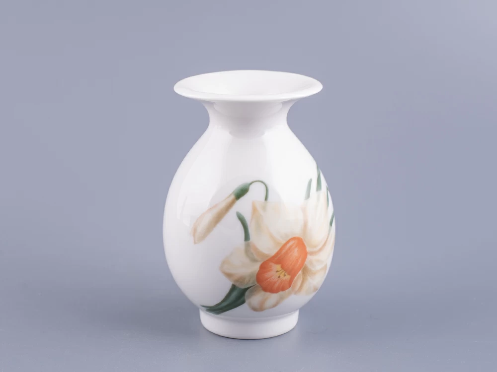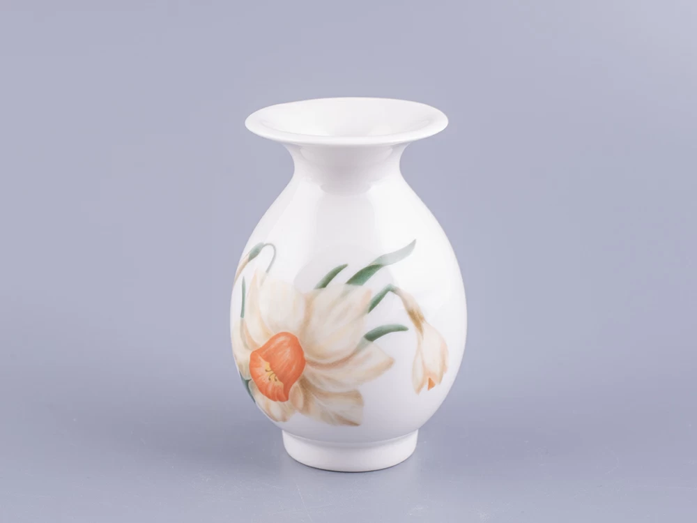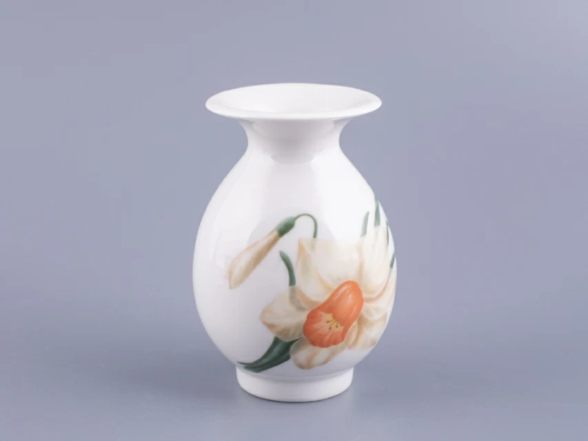 Цветы в росписи вазы «Нарцисс» изображены с детальной проработкой мельчайших нюансов: цветовые переходы, естественные изгибы, живая композиция. Свежий колорит, благородная лаконичность рисунка, выступающего на белоснежной фарфоровой поверхности, придают вазе особенную легкость. Она запросто впишется в любой интерьер и украсит Ваш дом.