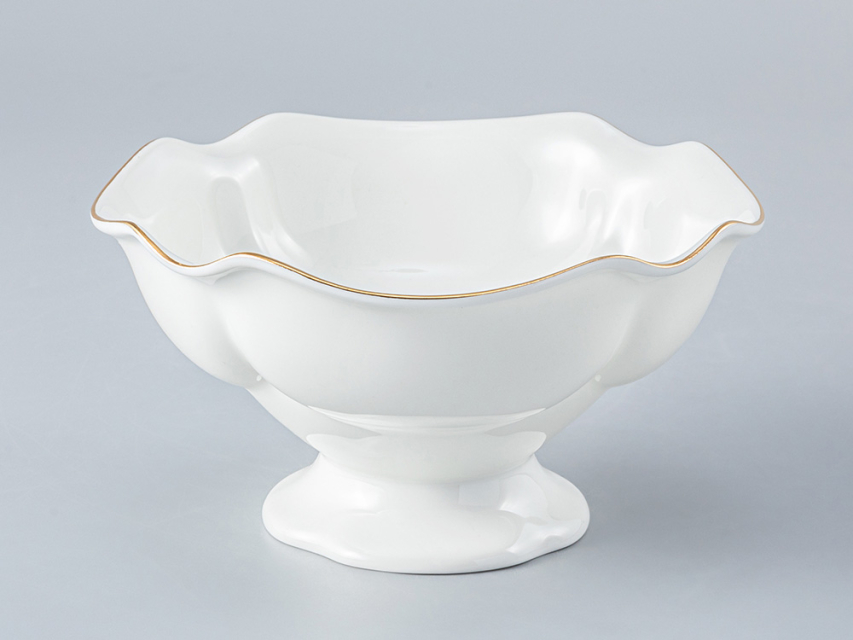 Изделие с рисунком "Золотая лента" изготовлено на Императорском фарфоровом заводе из костяного фарфора. Изысканная отводка, нанесенная натуральным золотом, деликатно обыгрывает белоснежную поверхность изделий, дополняет легкий, светлый образ, подчеркивает хрупкость материала, изящную форму предметов.