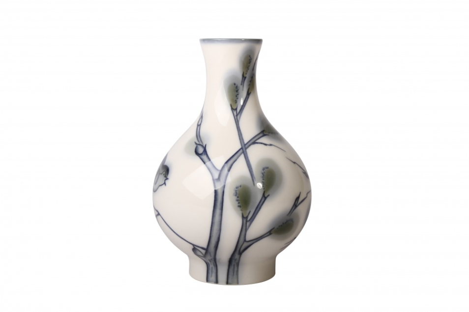 Ваза изготовлена на Императорском фарфоровом заводе из твердого фарфора. Форма отливается вручную. Для декорирования используется ручная подглазурная роспись. Автор рисунка - Ольга Матвеева, автор формы - Анна Лепорская. Выпуск изделия начался в 1980-х годах. Высота - 16.6 см.