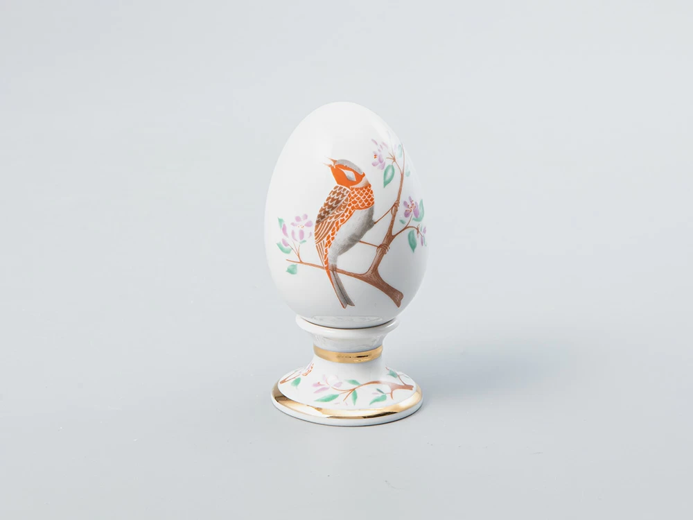 Трогательные певчие птички завели свои чудесные трели на уже распустившихся веточках деревьев в росписи Матвеевой М.Е., художника Императорского фарфорового завода. Эта атмосфера весны и пробуждения природы всегда сопровождает праздник Воскресения Христова, как и один из его главных символов – пасхальное яйцо, на котором разместились изображения изумительных миниатюрных птиц. Замечательная традиция дарения пасхальных яиц к празднику сохранилась и в наши дни – порадуйте своих родных и близких маленьким шедевром фарфорового искусства в этот светлый праздник Пасхи.