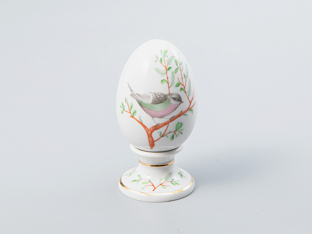 Трогательные певчие птички завели свои чудесные трели на уже распустившихся веточках деревьев в росписи Матвеевой М.Е., художника Императорского фарфорового завода. Эта атмосфера весны и пробуждения природы всегда сопровождает праздник Воскресения Христова, как и один из его главных символов – пасхальное яйцо, на котором разместились изображения изумительных миниатюрных птиц. Замечательная традиция дарения пасхальных яиц к празднику сохранилась и в наши дни – порадуйте своих родных и близких маленьким шедевром фарфорового искусства в этот светлый праздник Пасхи.