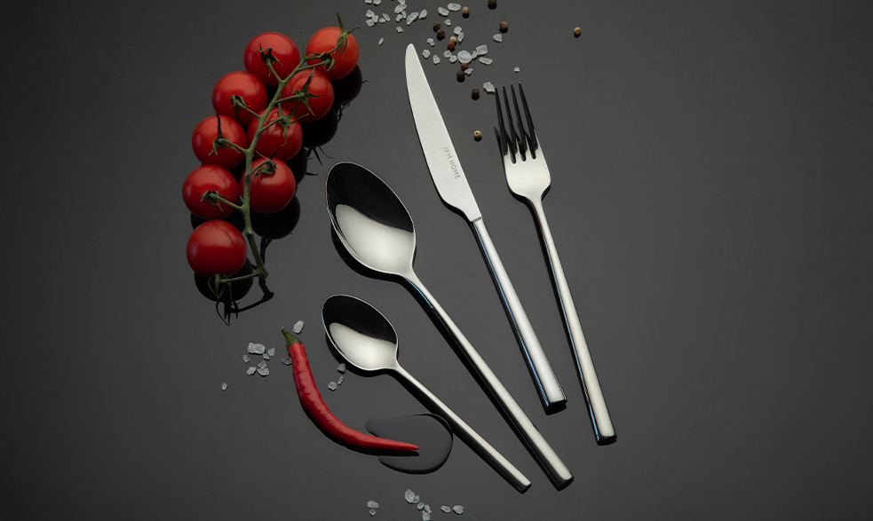 Ножи кладутся лезвием к тарелке, вилки и ложки — вогнутой стороной вниз. Справа располагаются ножи и ложки, слева — вилки. Сверху на тарелку параллельно краю стола укладывается чайная ложечка. Если будет подаваться первое блюдо, то ложку для него размещают в крайнем правом положении. Дальше справа располагается нож для холодных закусок, затем нож для горячих блюд. Аналогично с левой стороны раскладываются вилки.